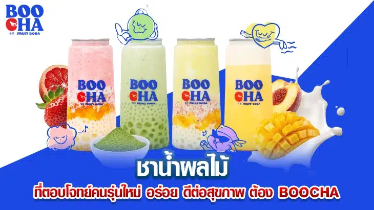 BOOCHA คือแบรนด์ชาน้ำผลไม้ปั่นเพื่อสุขภาพที่ออกแบบมาเพื่อไลฟ์สไตล์คนรุ่นใหม่โดยเฉพาะ โดดเด่นด้วยความใส่ใจในการคัดสรรผลไม้พรีเมียมมาปั่นสดใหม่ “แก้วต่อแก้ว” ดึงความหวานธรรมชาติออกมาได้อย่างลงตัวโดยไม่ง้อน้ำตาล ดื่มแล้วอร่อย สดชื่นแบบไม่ต้องรู้สึกผิด อีกทั้งยังเสิร์ฟมาในแพ็กเกจจิ้งสุดเก๋ที่ตอบโจทย์ความเร่งรีบของคนเมือง พร้อมเมนูซิกเนเจอร์สายเฮลตี้ถึง 4 รสชาติ ได้แก่ Strawberry, Mango, Avocado และ Mango & Durian Milk Frappe Boba ที่อร่อยฟินจนต้องบอกต่อ